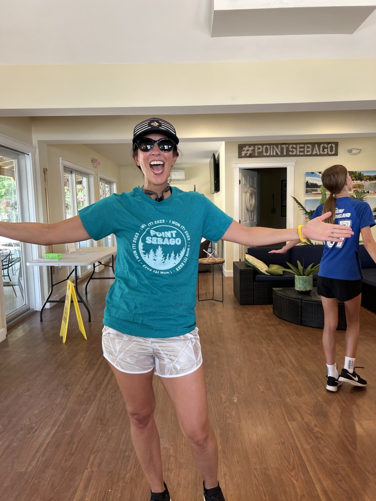 Joined the Point Sebago Jogging Club, in which if you run their 2k course every day for five days straight, you get an “I won it!” t-shirt, which normal people think of as a fun novelty, and my family thinks of as a must-have badge of honor that we will kill, die, or run 1.2 miles for. We thought the latter would be the easiest way to get one.