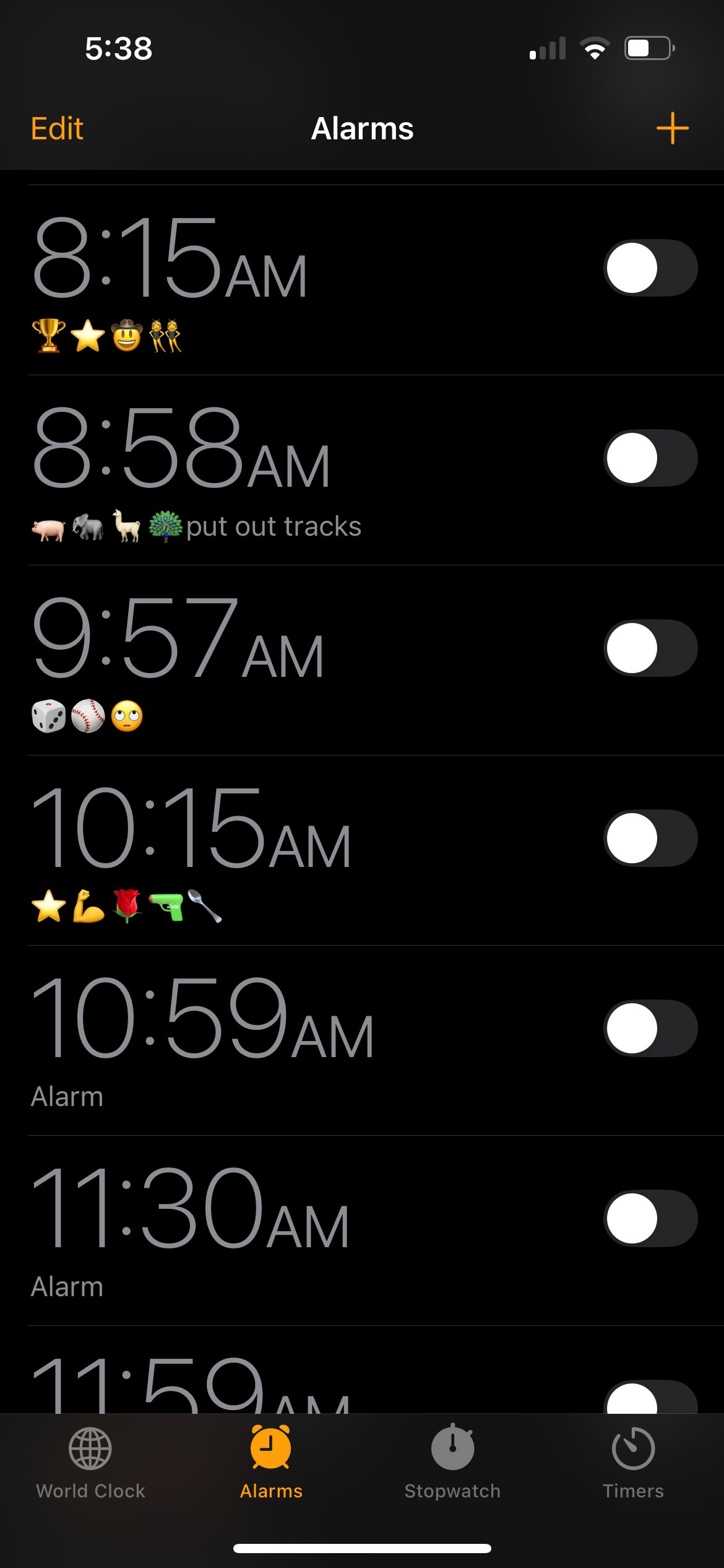 My iPhone alarms, which, like my car horn, I use liberally. If I don’t set an alarm for every meeting and every little thing I have to remember to do during the day, I will completely forget.