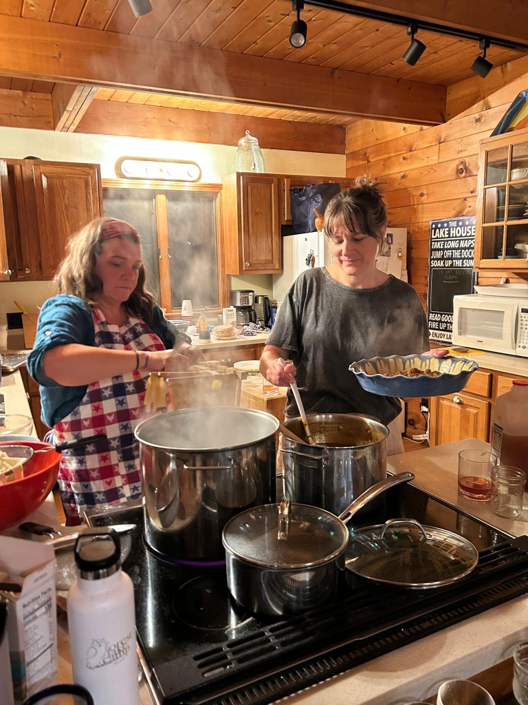 The Wife House™ Marie and I invented the Wife House™ as a dream concept, I believe when we were in Maine for the summer with our families and getting annoyed with our husbands over stupid shit. Wouldn’t it be nice, we imagined, if we had a place where just the wives lived, where no one stacked the dishwasher like a jabroni or bought Stonyfield French Vanilla yogurt when you wanted Wegman’s Plain Greek yogurt and then tried to gaslight you by saying that’s what you said you wanted. It’s not that we don’t want our husbands and kids, we just want our own space, where all the food is well planned out and everyone’s down for an impromptu dance party anytime a good Biggie song comes on. Well, I’m proud to say we manifested the Wife House™ this year and it was everything we’d dreamed it’d be. There was dancing. There was outstanding food. There was karaoke. There was forest foraging and hiking. There was sauna time and cold plunges. There was a competitive puzzle off. There was lots and lots of orange wine and even more laughing. So much laughing.