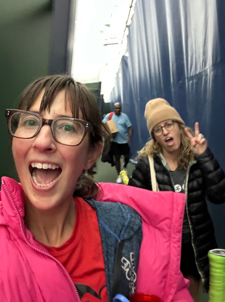 My tennis crew – I play at two places: Sportsmen’s, where Dee and I try to make the Intermediate Clinic every Monday night, and Franklin Park Tennis Association, where I do Skills & Games clinics on Friday evenings and Sunday afternoons. Dee and I have wormed our way into the hearts of the crew at Sportsmen’s, including Matt, our disheveled instructor who we suspect finds us amusing, Mariya, who we thought hated us but has gradually come to love us and even invited us to see a band with her this weekend, and Cary/Gary, whose name we disagree on and so we try to say it with a soft C/hard G so he doesn’t realize. At FPTA, I’m proud to have moved to the “4th court,” where the more advanced players play, and where everyone has a cool name like Dirk, Beau, or Rain. Seriously, those are really their names.